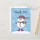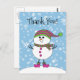 Skicka ett helgdag tack med den söta tjejen snögubbe. Hon är förtryckt i sin rosa- och grönt-sjalk och hatt med matchande stövlar står hon på ett berg av snö med snöflingor som faller om.