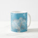 Vinterbakgrund bilder med rik blå himmel, silver träd, snöflingor och gnistor.