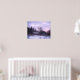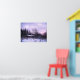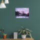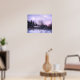 Den här poster har en vintersolnedgång. Ett rött hus är insnört i träd med ljus i skymningen. Rent vit snö har samlats i fält. Molnen i himlar glöden med regnbåge av orange, rosa, gult, blått och lila.
