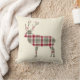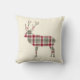 Vintertartan plaid hjort pelare. Tartan utformat av Gräs och Berry med en hjort i kranbärsrött, tan, kol och elfenbenstartan på en bakgrund av elfenben färg. Baksidan av den här designerkudden är rikens kranbärrött. Underbar för jul, helgdag, Julafton som dekorerar i ett rustiskt, skogsbeständigt, folkligt, land som lever, vinter-scener eller skogsmark stil. Den här hjorten silhuette, komplimenterar dekorering med andra djur med antenner som renar, mos, antelope och älkdesign.