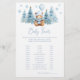 Add a touch of elegance to your winter festive themed baby boy shower with our sophisticated "Baby Traits" game. Featuring a charming teddy bear wearing cute blue hat and a scarf, holding a blue balloon, surrounded by winter pine trees and snowflakes and baby blue gingham pattern at the back, this delightful activity is perfect for entertaining your guests and creating lasting memories. Ideal for adding fun and excitement to your special celebration!