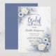 Elegant blue and white florals combined with pine cones create a serene winter themed bridal shower design Perfect for seasonal rustic or classic celebrations Soft sophisticated style ideal for winter weddings and showers 2026