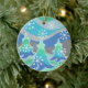 Ett modernt, stiliserat vinterlandskap med frostigt gräs träd och mousserande snöflingor. Keramiska prydnadsföremål med grönt, blått, silver grått och vitt anpassade som du kan anpassa med din egen text, bilder och dina idéer. Bilden skapades med en digitalt utökad färgpenna teckning.