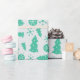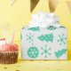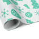 "Vinterturkos Julgran Snowflake Ornament Wrapping Papper" visar turkos Julgranar och prydnadsföremål mot snöbakgrunder och lägger till en coola, chic-twist till helgdag presentförpackning.