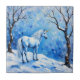 En drömliknande scen fångar en enhörning i ett ögonblick av tyst övervägande mitt i ett milt snöfall. Det primära färg är coola blues, isig whites och viskare av silver. Unicornen, med sin blommande mane och svan, framställs med något starkare pigment för att framträda, medan det fallande snö skapas med små, känsliga vita fläckar och ljusare tvättar. Marken är en blandning av snövita och blekblå skuggor, där träd grenar framstår som mjukt, suddigt linjer i bakgrunden, vilket ökar den lugnande och eteriska stämningen. Den totala effekten är ömtålig och nästan kristallin, perfekt för ett lugnande utrymme i insida.