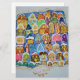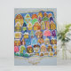 * Color Palette: The drawing uses a vibrant mix of teal, pink, orange, and purple, contrasted against a deep indigo background.