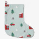 Bring winter charm to your Christmas with this festive stocking featuring red houses, cheerful snowmen, Christmas trees, trucks with holiday greens, and fluffy sheepdog. A cozy, playful pattern perfect for seasonal décor or gifting.