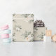 Fin elegant papper designad med vit ros under vintern i nosegays med eukalyptus och blå enbär, allt på beige.