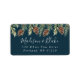Returetiketter i Rustic bröllop som har en översta gräns av vattenfärgade pinekoner och gräs med en marin bakgrund. Namn visas i ett modernt kalligrafiskript med adress som visas nedan. Designad för samordning med vår Winter Watercolor Pinecone bröllop samling.