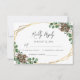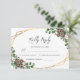 Den här utformningen har ett guld-geometriskt ram som dekoreras med vattenfärgen gräs och vintergrey, inklusive eukalyptus och holly löv, med ord "Kinely Reply" i kalligrafiskript för grått-snyggt-kol. Idealisk för en vinter eller jul, bröllop. Kortets baksida är en matchande ton av solid grönt.
