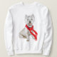 Winter Westie in a Red Scarf Sweatshirt