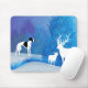 Black and white Whippet dog image with winter background and white deer.