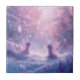 Surrounded by sparkling trees and pastel mist, they share a quiet moment of wonder and warmth.