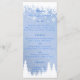 Snyggt menykort med vackert vintertema. Ljusblått med lacy snöflingor och Winter, snö täckte träd i gräs. Anpassa med texten och välj ditt favoritteckensnitt. Allt designat inslag kan flyttat och anpassas efter dina specifikationer.