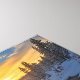 A breathtaking winter scene. The sun is setting, casting a warm, golden glow across the snow-covered landscape. A winding river flows through the scene, its dark waters contrasting with the bright snow. The riverbanks are adorned with snow-covered rocks and trees, creating a picturesque winter wonderland. The sky is a vibrant blue, with wisps of clouds adding depth to the scene. The overall atmosphere is serene and peaceful, evoking a sense of tranquility and natural beauty.