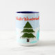 Den här designen skapades digitalt, ett träd i taget. Slutresultatet är trädens vinter Wonderland. Färgen på handtaget och inuti muggen kan ändras.