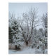 Snö skapar en helt vit täckmantel mot mörkens kontur i grenar i träd och skapar ett snövinter, vintern. Landskapet på det sceniska skogen täcktes i vitt efter en snöstorm som lämnat ett mycket flytande snöfall. Bilden av ett träd täckt av snö togs i ett skogsområde nära kant.