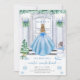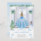 En tjej som jul födelsedagsfest inbjudan. Vattenfärgsdesignen är vinterprinsessan snö. Flickan på födelsedagen ses bära en blå klänning och komma in i party som dekoreras utanför med en snö man, Julgran, presenter, vrak och jul-ljus. Snö och snöflingor sjunker.