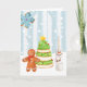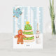 Detta vackra julhälsningskort i helgdag har en vinter-skogsscen med en cookie Julgran, snöflake och pepparkaksgubbe bredvid en marshmallow-snögubbe.