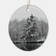 Detta prydnadsföremål har ett svart och vitt foto som skildrar skönheten hos vintergrönt träd vid ett sjö på en vinterdag. Det förmedlar den fred och lugn som följer med en ny filt av snö och rättvisan och det skapar - verkligen ett Winter Wonderland! Om du tittar dig noga kommer tittaren att märka att fotot togs när snö föll (och föll), vilket ger unika effekter på den här idylliska scenen. Plats: Illinois, USA-foto © Wafa Y. Dahdal - Med förbehåll för alla Höger.