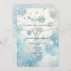 Den här moderna vinterbröllopsinbjudan blandar ihop stel elegans med funktion. Snöflingor, ett romantiskt silver-rep-hjärta med dammig blå vattenfärg, och utrymme för en QR-kod som länkar till bröllop webbplats eller OSA, är en snyggt för teknikvilt par som planerar en vinterbergbana firande.