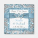 Det här isblått, silver grått och vitt FAUX glitter blommigt-fuktmönster, förutom datumet då bröllop magnet har ett blått tryckt band och båge med ett par tryckt FAUX glitter och diamantjuvlar gått med hjärtan på det som matchar de bröllopsinbjudningar som visas nedan. Texten är anpassade så att du kan ändra den till "Tack" och ge den till en bröllopsförmån om du vill. Om du vill ha några andra matchande objekt i den här designen skickar du e-post till niteowlstudio@gmail.com.
