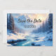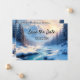 Vintern Spara datumkortet med ett snö täckte vinterlandskapet med en flod. På baksidan finns utrymme för anpassningsbarnas foto.