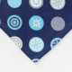 Flockfilt för vinbär med en polka punkt mönster i snöflingor, stjärnor, snurrar, prickar och annat i skuggor av blått, grått och vitt på mörk blått bakgrund.