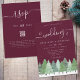 Winter Woodland Burgundy bröllopsinbjudan med Watercolor Fir Träd, skript Typography & QR Code OSA firar kärlek med naturens fantastiska skönhet i denna inbjudan till Winter Woodland Burgundy Wedding. Med handmålat träd i en snögrön skog mot rikens burgundbakgrund blandar denna elegant ihop den sofistikerade träsket med modern sofistikering. Om du vill ha enkel behålla och snyggt för sak, innehåller inbjudan utrymme för en QR-kod för bröllop-webbplats, vilket gör att gästerna enkelt kan söka och OSA online. En modern detalj som gör din stationär både vacker och funktionell. Inbjudan visar skarpa, vita skript parade med ren modern typografi, skapande ett tidlöst utseende som är perfekten för vinterbröllop, rustika skogsceremonier eller mysiga firande. Originalteckning av konstnären Catherine Sweetman, känd för hennes skönhet men elegant vattenfärg stil. Den här exklusiven sammanför naturskönhet och romantisk elegans för bröllop-stationär som känns personlig och oförglömlig. Nyckel har djup brinnande bakgrund med vintergröna träd Elegant-vita skript och modern typografi för contemporary pekutrymme för bröllop webbplats QR-Exklusiv-originalteckningar av Catherine Sweetman Fully-anpassade med OSA, namn och data för bröllop för vinterbröllop, skogsteman, bergsplatser i bergstrakter eller Perfekt A-helgdag En vacker balans mellan naturinspirerad charm och modern sofistikering firande era dina gäster med skogsvårdsskönheten och burgundys rikedom och ange Inbjudans ton för ditt oförglömliga vinterbröllop perfekt.