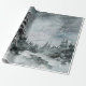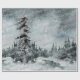 Vattenskärtskog med vinter-skymning med ord i God jul, skriven i en kalligrafi i silver över hela pappra området.