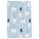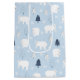 Playful polar bears explore a snowy forest of blue and gray trees, surrounded by falling snowflakes. A soft and cheerful winter scene full of Arctic charm.