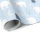 Playful polar bears explore a snowy forest of blue and gray trees, surrounded by falling snowflakes. A soft and cheerful winter scene full of Arctic charm.