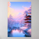 Upplev den vackra vintern Zen med vårt konstverk med ett japanskt tempel sitta på en flodbank under en lugn vinter kväll. Kvällens fredliga stillhet, den stilla reflektionen av templet på floden och det subtila skönheten i landskapet som täcker snö hela komen tillsammans för att skapa ett fantastiskt konstverk.