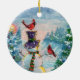 Keramisk prydnad som presenterar nätt röda kardinaler!