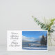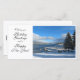 Snöig marinashoreline av Payette sjön, McCall, Idaho med ett perfekt vintergrön träd och blåttblå himmel reflekterade i sjön.