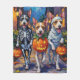 De berömvärda Wire Fox Terriers som är klädda i lekfulla Halloween-kostymer bär pumprackor medan de lurar eller behandlar under det månbelysta himmel. Denna festliga utformning belyser rasens torra jacka, varningsuttryck och energiska personlighet, som perfekt fångar upp den förevändbara roligten av Halloween-natten. En glad och livlig firande för både hundälskare och Halloween fläkt.