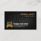På andra sidan, i ett svart omslag, är logotypen guld lastbil högst upp, följt av kontaktuppgifter och ett alternativ med en slogan.