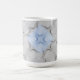 Trådram mönster 08.B I den här bilden visas ett rutnät för trådramar mönster med en mittruta markerad med blått. Rutnätet linjer förvrängs och förvrängs, vilket skapar djup och rörelse. Den centrala kvadraten verkar vara en brännpunkt, där rutnätet linjer närmar sig den. Den övergripande effekten är en av abstraktens geometriska utformning, med fokus på linjer och formers samspel. Bilden framkallar en känsla av dynamik och energi, med det förvrängda rutnätet linjer som antyder ett flöde och en rörelse inom designen. Användan för svart och vitt skapar en skarp kontrast, vilket ytterligare understryker det geometriska mönstren.