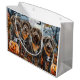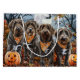 Släpp upp spookandan med den här eerie Halloween-designen med en hundar-förpackning under en mörk, månbelyst himmel, omgiven av flygande fladdermus och glödande pumpor. Perfekt för dem som kärlek en aning skrämmande roligt med sina hårigets vänner!