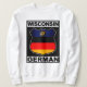 Wisconsin German, stil på ett amerikanskt vägskylt i coola. Texten Wisconsin German ligger längst upp och grund, med flagga i delstaten Wisconsin och flagga Tyskland inuti vägskylten. Underbar för Wisconsinites av tyskt ursprung och för ex-pats!