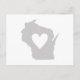 Wisconsin Grått State Karta Shape with Heart Cutou Vykort