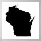 Formen för Wisconsin i svart. Du kan ändra bakgrunden till färg och lägga till ett textmeddelande i ett skarpt teckensnitt för att anpassa en anpassningsbar souvenir.