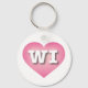Den här nyckelkedjan har ett rosa i coolan med ett vitt tvättat centrum som innehåller WI-formeln Wi i brev, dvs. i fetstil, vit, övre fodral, och officiellen, förkortningen Wisconsin, badger-tillståndet.