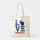 Wisconsin kärlek - Wisconsin med röd versalstil, med nära ord fylld med statlig flagga. Brev O i kärlek är en silhuett med konturerna av Wisconsin.