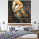 Majestic and serene, this barn owl commands attention with its classic heart-shaped facial disc and intense dark eye that seems to hold centuries of quiet wisdom. Golden hues blend seamlessly across its head and wings, accented by intricate patterns of slate gray, warm rust, and delicate speckling that catch the light like living velvet. Dew-kissed feathers shimmer against the textured backdrop of weathered bark and vibrant autumn foliage in rich shades of crimson, amber, and deep bronze. Evoking a sense of ancient mystery and nocturnal grace, the composition draws viewers straight into a moonlit woodland realm where nature feels both intimate and eternal. Perfect for nature enthusiasts, bird lovers, fantasy art collectors, or anyone seeking striking home décor, wall prints, apparel, or personalized gifts that celebrate wildlife beauty.
