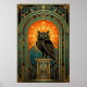 Wise Owl Silhouette Art Deco Midnight Gold Poster