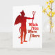 Silhouetten av en svulstig djävulen på vitbakgrund med text "Wish var du här",