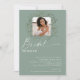 Den tidslösa eukalyptus lämnar mot en sage-gröntens bakgrund från en klokare krans runt den speciella bilden av den brud som ska bildas och skapar en elegant och romantisk aura. Para bra med de flesta eukalyptus-temade bröllop-stationerna. Anpassa enkelt din personliga information och dina foton på kortets framsida och baksida.