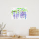 En poster som innehåller en wisteria träd gren i fullt-blomma med blommor i skuggor av mjuk lila som färgats med vattenfärg accentuerad med spridda fläckar i bakgrunden. Du kan redigera texten efter behov. I blommornas språk välkomnar Wisteria-elaken. Prova den här designen på en t-shirt, bärbar dator eller något av de andra underbara plagg Zazzle kan göra!