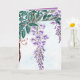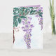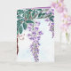 En vintage som illustrerar en lila wisteria-vinska i blomning.